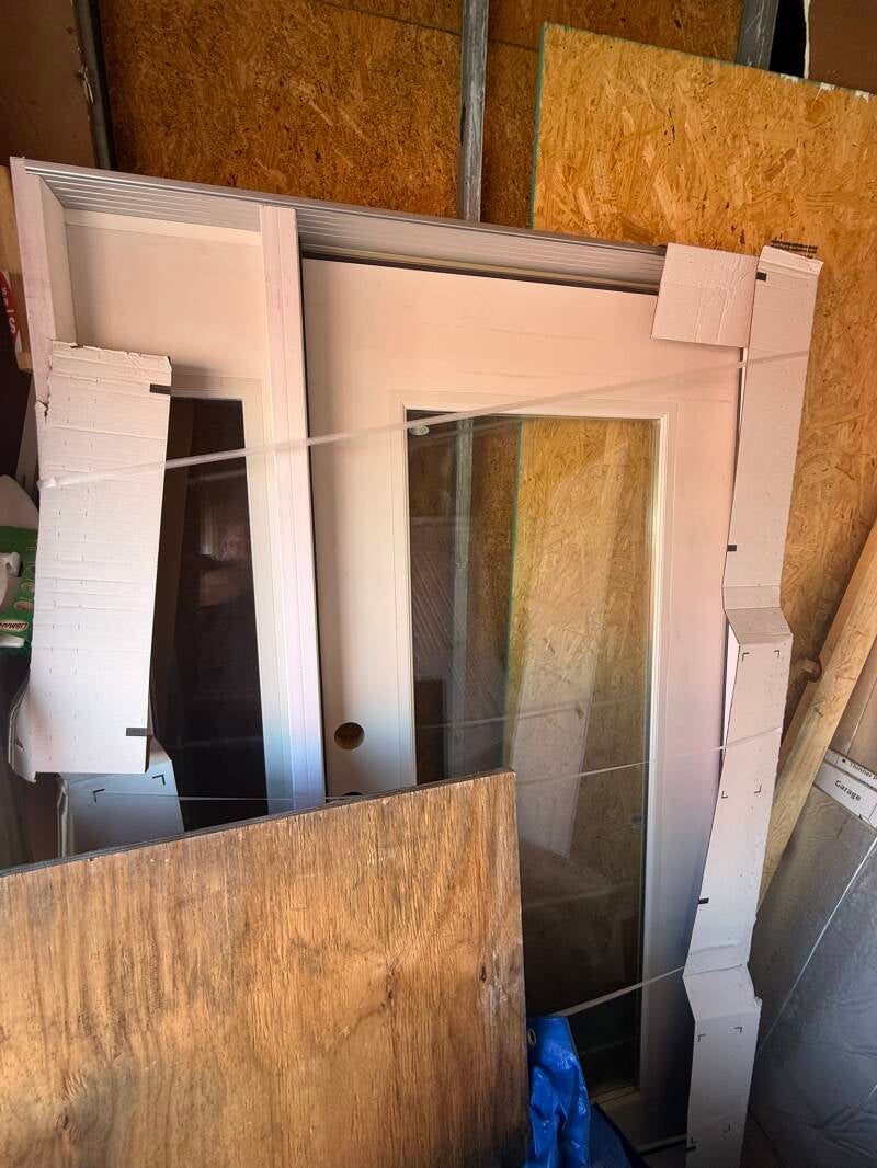 Christina to the left is your door in storage brand new still in box for you to review the one above is the material we would use for your ceiling. FYI Door is kept upside sown while in storage for threshold protection.